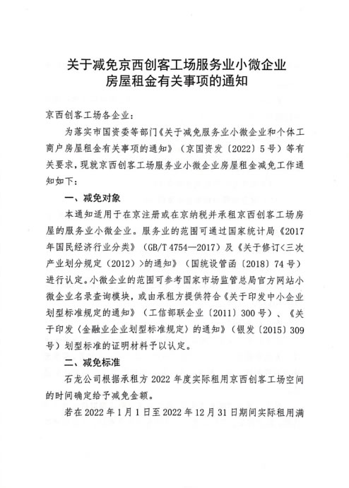 近期,受新冠疫情沖擊等不利因素影響,部分小微企業(yè)和個(gè)體工商戶經(jīng)營困難,面臨生存壓力。石龍總公司堅(jiān)決貫徹落實(shí)黨中央、北京市委市政府和市國資委黨委的決策部署,積極響應(yīng)《關(guān)于減免服務(wù)業(yè)小微企業(yè)和個(gè)體工商戶房屋租金有關(guān)事項(xiàng)的通知》的政策要求,對(duì)符合要求的小微企業(yè)和個(gè)體工商戶減免3個(gè)月房租,切實(shí)履行國有企業(yè)社會(huì)責(zé)任,關(guān)鍵時(shí)刻彰顯國企擔(dān)當(dāng)。